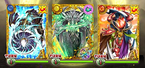 | 先制カウンター(1000/100T)→チェイン解除→3体約400の5連撃 | 先制スキル反射(全体封印/11T)→3体約400の5連撃 | 先制カウンター(1000/100T)→3体約400の5連撃 |