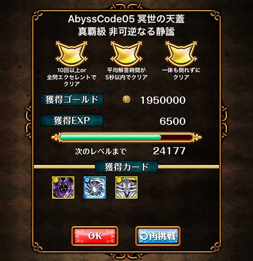 AbyssCode05 冥世の天蓋「真覇級」の攻略記事です。配布のみサブクエ3枚抜きデッキをご紹介します。