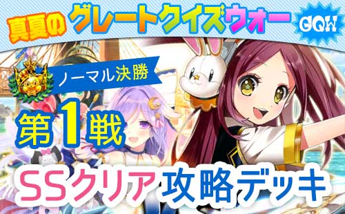高校生クイズコラボ「真夏のグレートクイズウォー」ノーマルモード決勝 第1戦「アイドル修羅道」の攻略記事です。GQWはトーナメント形式のイベントクエストです。相手(まいみ)のクリアターンはランダムのようですが、大体12ターン以内にクリアできれば勝ち抜くことができます。