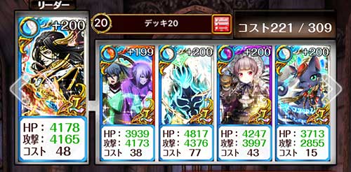 グレードSS達成のデッキです。ボス戦では敵のスキル反射が「封印+弱体化」の為、状態異常無効がいればSPスキルが使用できます。