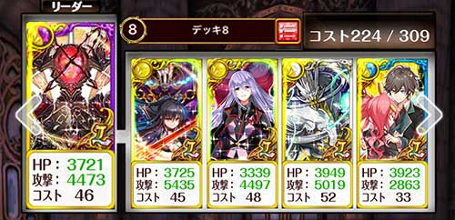 | 3体に約300の3連撃 | 先制ダメージブロック(8000)→3体に約300の3連撃 | 3体に約300の3連撃 |