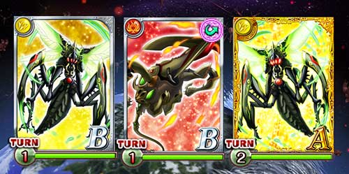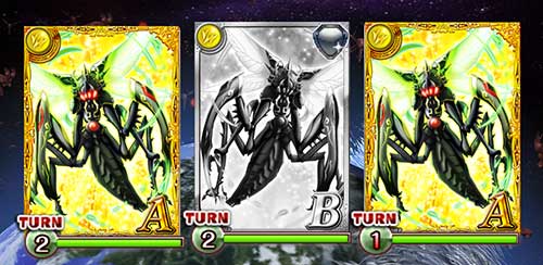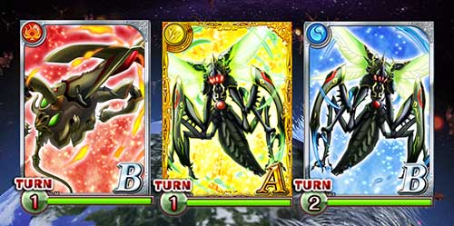| 先制死の秒針(5T)→全体に約1200の攻撃 | 3体に約300の5連撃 1体倒れると怒り:先制多弾式カウンター(700/5T)→3体に約300の5連撃 |