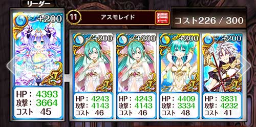 チェインガードをもってたので、天使メインで組みました。HPは4000前後を目指しましょう。後半の攻撃はダメージブロック800でシャットアウトできます。サブクエを意識して見破りも連れて行きました。