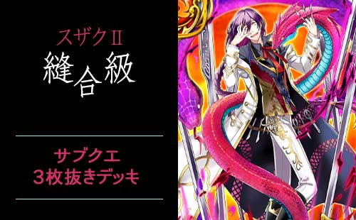 「幻魔特区スザクⅡ カリュプスの槍」縫合級の攻略記事です。前回のイベント時にはサブクエコンプできなかったので、今回はリベンジなのです(•̀ω•́ )サブクエ3枚抜きできたので、デッキなどご紹介します。