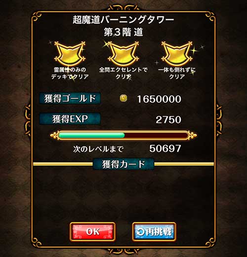 - 雷属性のみのデッキでクリア
