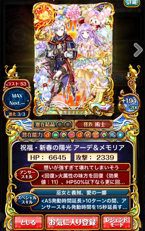 HP50%以下の回復量は頼りになるし、5T周期の蘇生回復は良いですね。あと潜在がすごくいい!