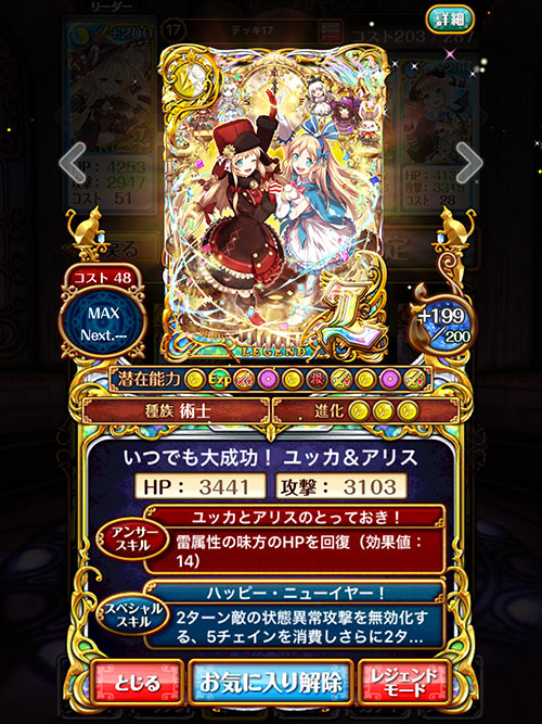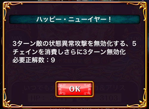初回4ターンで状態異常無効スキルが使用できます!これはレイドで活躍できそう。5チェインを消費してしまうので、チェインアタッカーと組む時には使いどきに注意が必要です。