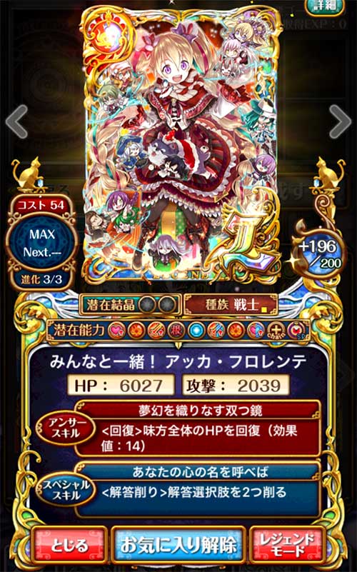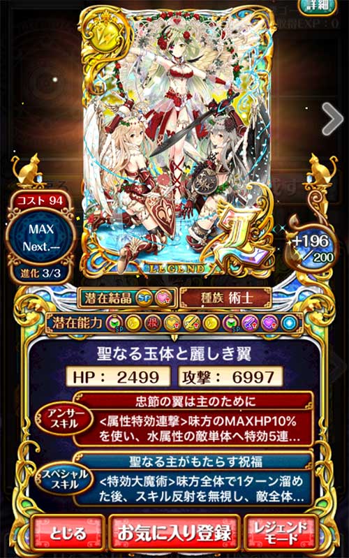 潜在には「戦士・術士攻撃力アップ(300)」「戦士・術士HPアップ(300)」「SPスキル・AS封印無効化」がついています。