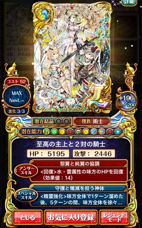 クエストによってはヒーラーはこの1体で賄うこともでき、優秀なサポート精霊だと思います。