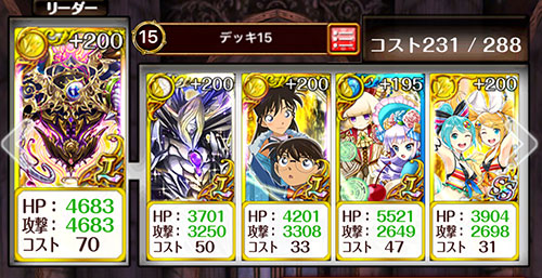 補助役のコナン&蘭は、コナンイベントの報酬で入手できます。入手難易度が低い割にHPと攻撃力どちらもアップしてくれ、ステミクを持っていない自分には救世主でした。