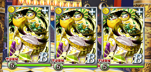 | 先制スキル反射→以降3体に約600の5連撃のみ | 先制ダメージブロック(30000)→以降3体に約350の5連撃のみ |